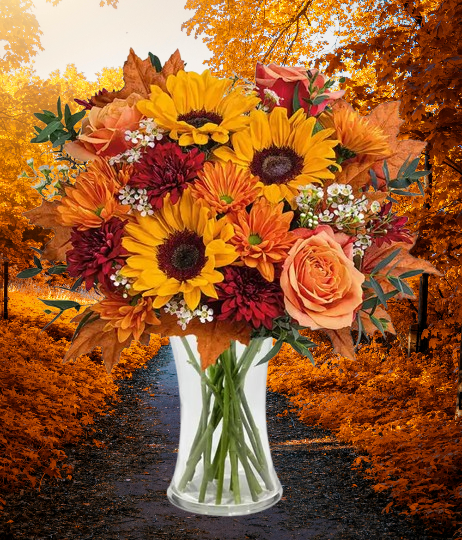 A radiant mix of warm oranges, golden yellows, and deep reds that perfectly capture the fall season.